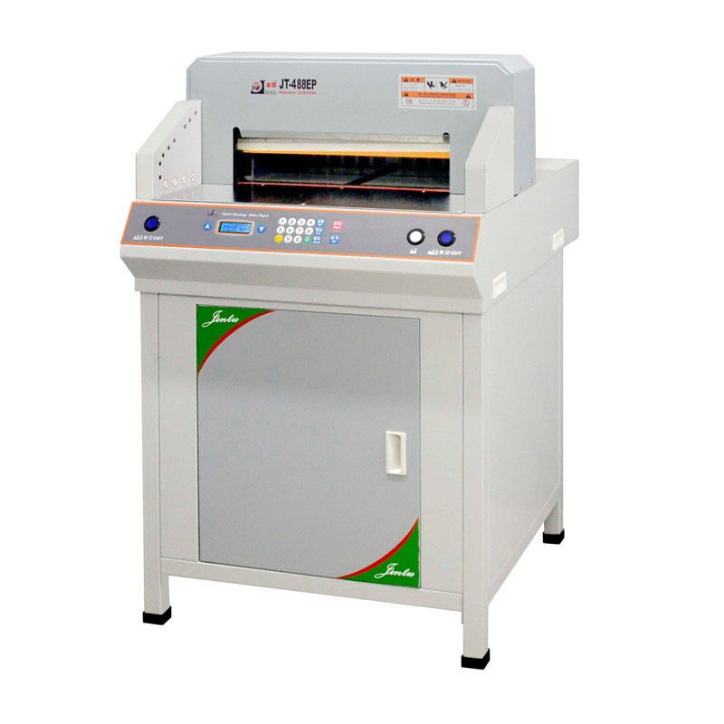 ◆ 采用微电脑程序控制电路,蓝色液晶显示,内置3×99组裁切数据记忆和手动、自动、分切等工作模式设定,自动精准的完成推纸、压纸、裁切等动作。