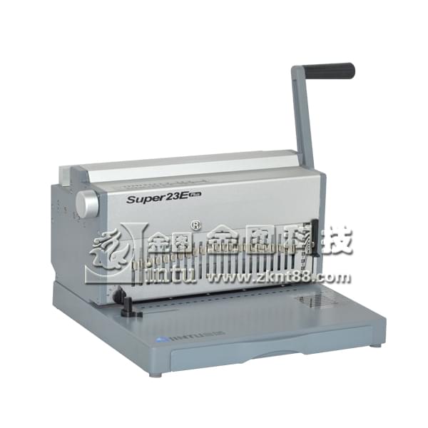 Super23E plus铁圈(双线圈)装订机是一款外形美观、操作简单,集多项设计于一体的重型纸张装订设备。采用全金属整体结构,时尚的全铝外观设计。
