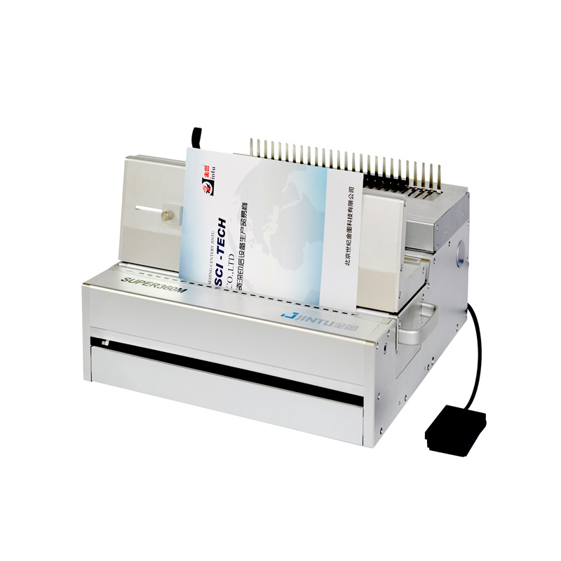 随机配备梳式胶圈打孔刀具及人体工学设计的一体化梳式装订组件,并采用垂直放纸方式,电动脚踏式打孔功能,使生产效率有了显著的提高,满足大工作负荷的需求。